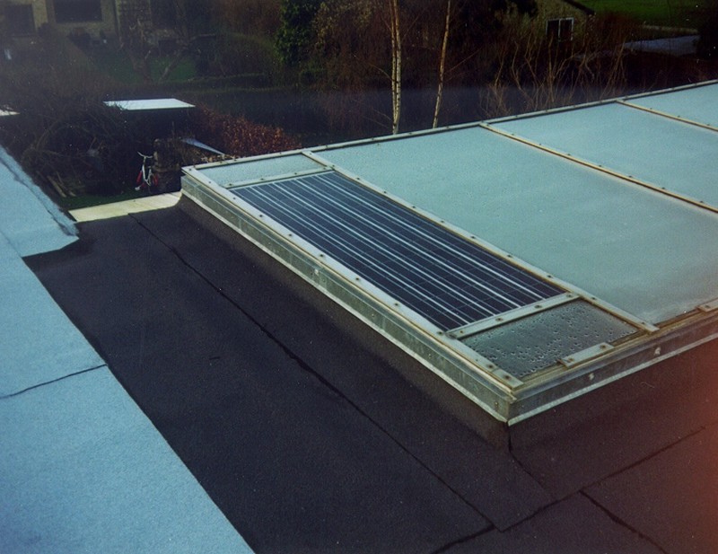 Lyngby - kombineret væske- og luftsolvarmeanlægI 1995 blev der installeret en ny type solvarmeanlæg i et rækkehus i Lyngby med et bebygget areal på 81 m² samt fuld kælder. Solvarmeanlægget var et kombineret luft/væskesolvarmeanlæg. Solfangeren er en 10 m² luftsolfanger placeret på husets tag. Ventilatoren i systemet drives direkte af et solcellepanel. Den opvarmede luft sendes ned i kælderen, hvor varmen fra luften overføres til en lagerbeholder med vand via en effektiv luft-til-væske varmeveksler. Luften sendes herefter ud i kælderen som forvarmet friskluft. Der blev gennemført målinger i perioden efterår 1995 - efterår 1997, samt efterfølgende beregninger. Anlæg og resultatet af målinger og beregninger er beskrevet i rapporten "Solvarmeanlæg med luft som transportmedium".