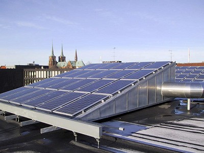 Måleprojekter: Roskilde BankRoskilde Bank har hovedsæde på Algade/Hersegade i Roskilde. I forlængelse af hovedkontoret blev der i perioden 1999-2000 opført en tilbygning tegnet af Tage Nielsens Tegnestue. På taget af tilbygningen er der opført to kombinerede solcelle- og luftsolvarmepaneler med i alt ca. 48 m2 solceller, der udover at levere el-effekt til nettet også skal bidrage til opvarmning af ventilationsluft til bygningen. Derudover er der i forbindelse med byggeriet anvendt solceller integreret i ovenlysvinduer, og der er opstillet et par forsøgspaneler. Der er gennemført målinger på de kombinerede solcelle- og solvarmepaneler i perioden februar-juli 2001 med det formål at dokumentere panelernes elektriske og termiske ydelse. Målingerne er dokumenterede og behandlede i rapporten "Solassisteret ventilation - målinger på PVT-anlæg hos Roskilde Bank" (pdf, 1.799 kb).