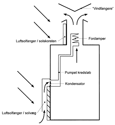 Naturlig ventilation med varmegenvinding og solassistanceEt samlet koncept for naturlig ventilation med varmegenvinding og solassistance er blevet undersøgt. Det undersøgte koncept bygger på en væskekoblet varmevekslerkreds, hvilket betyder, at friskluftindtag og afkast kan placeres uafhængigt. Dette åbner op for mere varierende systemudformninger, og betyder også, at de naturlige drivtryk kan udnyttes bedre.