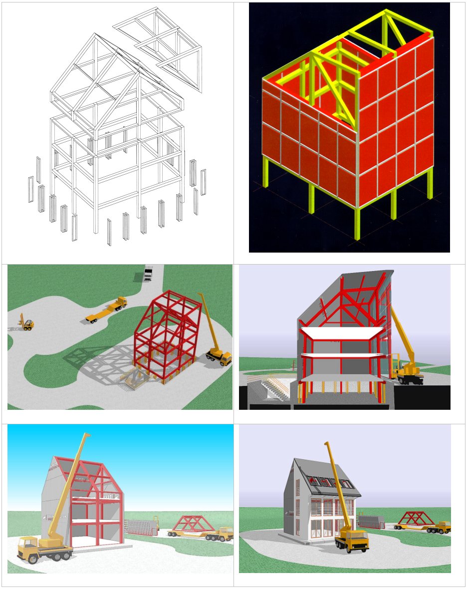 er den udviklede testfacilitet beskrevet detaljeret. 2) beskriver baggrunden for konceptet, mens konceptet er detailudviklet i 1). I 2) opereres der med adiabatiske zoner, dette er i 1) ændre til mere håndterlige adiabatiske paneler. En kortere beskrivelse af testfaciliteten findes i EuroSun 2000 paper'et "Test facility for building integrated solar energy" (pdf, 677 kb). Nøgleord for det udviklede koncept er: stor målenøjagtighed, stor fleksibilitet, realisme og store facader - parametre der alle er vigtige for at opnå maksimal viden om de afprøvede bygningskomponenter og byggekoncepter. En viden der er behov for i den fortsatte forskning og udvikling hen imod øget kvalitet i danske bygninger. Konceptet består, som vist i figurerne på billedet herover (klik for større billede), af en stålkonstruktion, hvor facader og tage kan anbringes med den ønskede orientering. Det er muligt kun at måle på én flade, mens indflydelsen af de andre flader elimineres ved anvendelse af de ovennævnte adiabatiske paneler. På den måde er det muligt at måle på facaderne/energikomponenterne isoleret under helt kontrollerede forhold, hvorved de termiske processer i facaderne/energikomponenterne kan bestemmes meget præcist. Samspillet med den øvrige bygning kan derefter fastlægges ved kontrolleret at introducere de andre termiske processer, der normalt optræder i en bygning. Samtidigt at det muligt at gennemføre visuel og konstruktionsmæssig afprøvning af facade og energikomponenter.